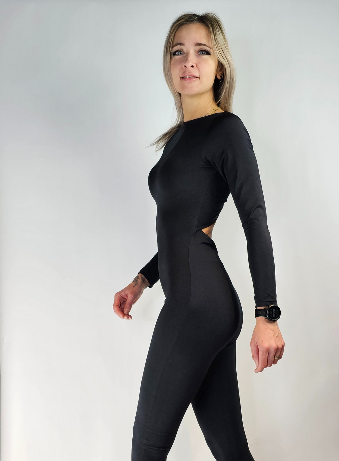 Long Sleeve Backless Jumpsuit in Suplex Fabric